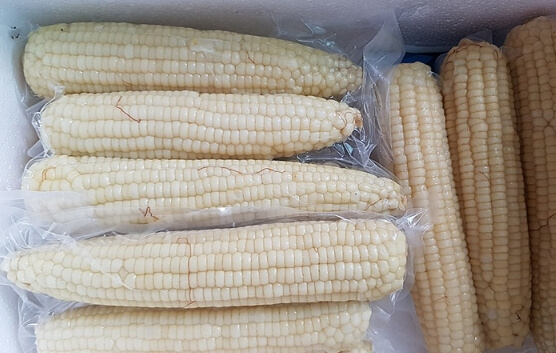 홍천의 대표적인 찰옥수수 품종인 미백과 미흑찰 두 품종을 판매하는데 미백은 알갱이가 하얀 품종이고 미흑찰은 알갱이가 검은 품종으로 미백을 활용한 찐옥수수는 3개당 4천원에 판매한다고합니다.