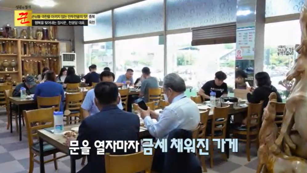 성공의 정석 꾼 만두전골 파는 곳 가게 충북 옥천 경성만두요리전문점은 새벽 4시 반부터 만두소와 육수를 만들어 장사를 준비하면 문을 열자마자 손님이 가득차 버립니다.