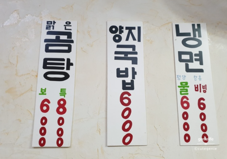 맑은곰탕 6,000원 / 맑은곰탕 특 8,000원 / 양지국밥 6,000원