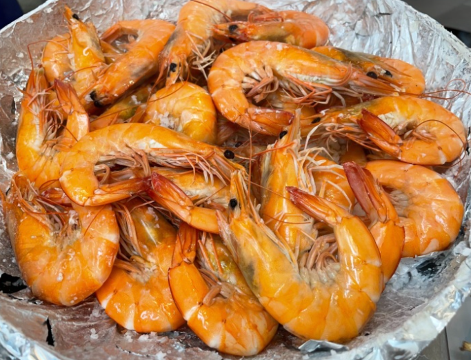 갓 잡은 신선한 대하를 굵은 소금 위에 노릇노릇 구워 머리까지 맛있게 먹는 대하 소금구이.