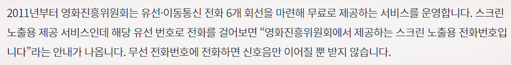 영화계에서는 이미 2011년부터 영화에서 사용되는 전화번호를 영화진흥위원회에서 회선을 마련해 오고 있었다고 합니다.