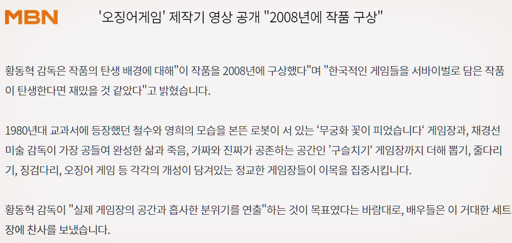 넷플릭스 드라마 오징어게임은 당연히 사실이 아닌 상상력과 창작에 기반한 내용이지만 드라마의 성공요소인 사실성을 극대화하기 위해 할 수 있는 노력을 모두 하는 것은 제작자 입장에서는 당연한 일입니다.