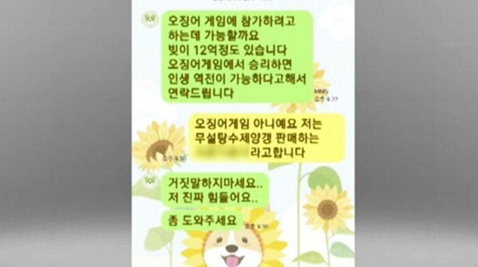 성실하게 사업을 하시던 분이 갑작스레 오징어게임 어쩌구 저쩌구. 빚이 얼마니 게임에 참가 시켜달라는 등의 전화에 시달리고 있다니 얼마나 괴로울까요.