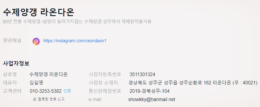 그리고 이 분은 실제로 스마트스토어에서 수제양갱 라온다온을 운영하고 계십니다.