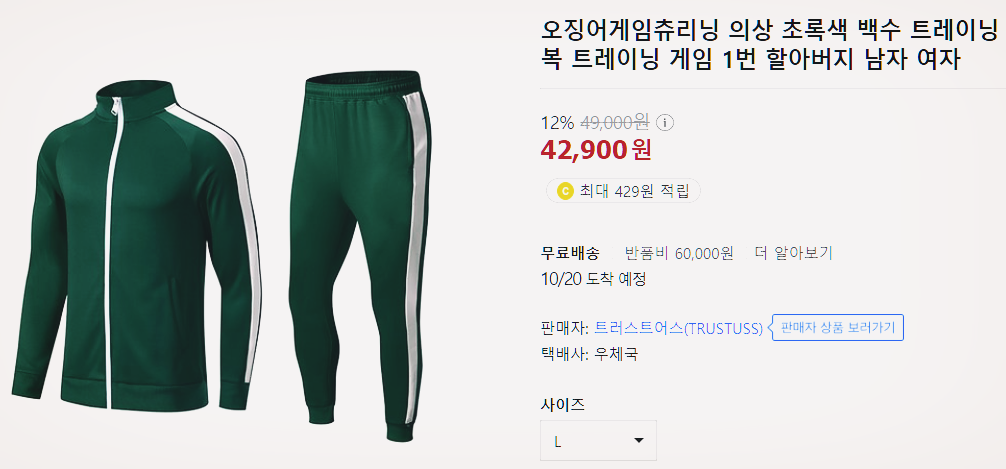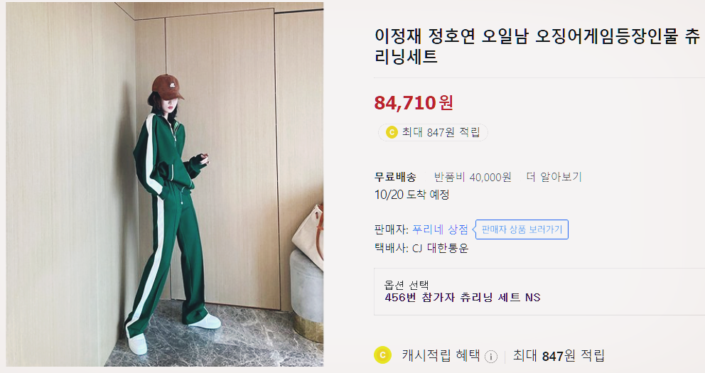 오징어게임 츄리닝 파는 곳 가격 구매 택배 주문 방법