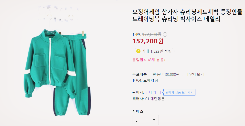 넷플릭스 드라마 오징어게임의 흥행과 더불어 작품내에서 게임참가자들이 입었던 초록색 트레이닝복도 인기를 모으고 있습니다.