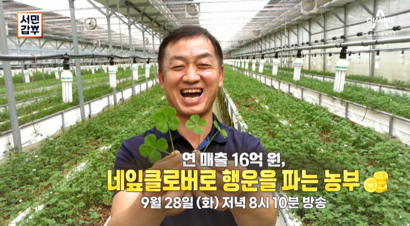 전국 방방 곡곡의 자수성가한 대한민국 슈퍼리치 서민갑부들을 찾아 맨바닥에서 시작하여 부를 이룬 서민갑부들만의 아주 특별한 성공 스토리를 알려주는 프로그램 서민갑부에서는 식용 네잎클로버로 연매출 16억원을 올리고 있는 농부가 소개되었습니다.