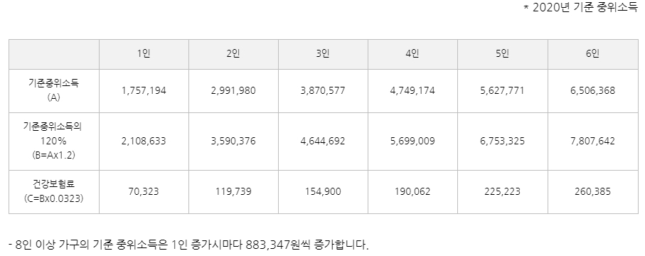 청년 구직활동지원금 참여는 생애 1회 지원으로, 중복 참여가 제한됩니다. 또한 가구 소득이 기준 중위소득 120% 이하여야 지원 대상에 포함되는데요. 자세한 기준 중위소득은 아래 표에서 확인하실 수 있습니다.