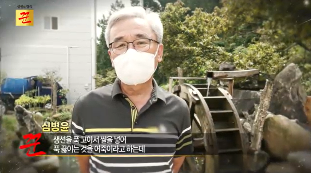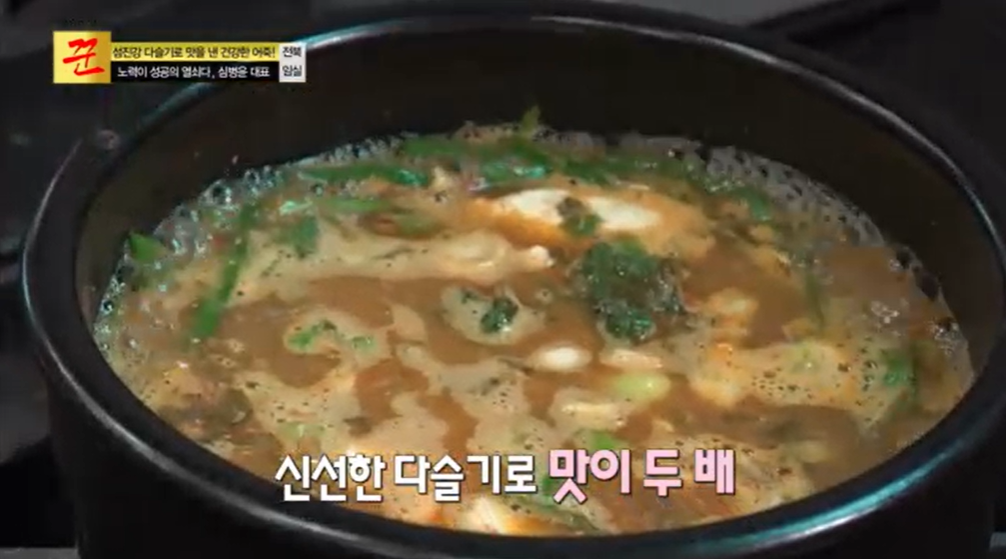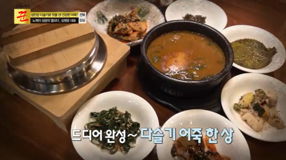 성공의 정석 꾼에서 방송된 전북 임실 다슬기 어죽은 섬진강 청정 1급수에서 잡은 다슬기와 싱싱한 생선을 15시간동안 푹 고아서 만듭니다.