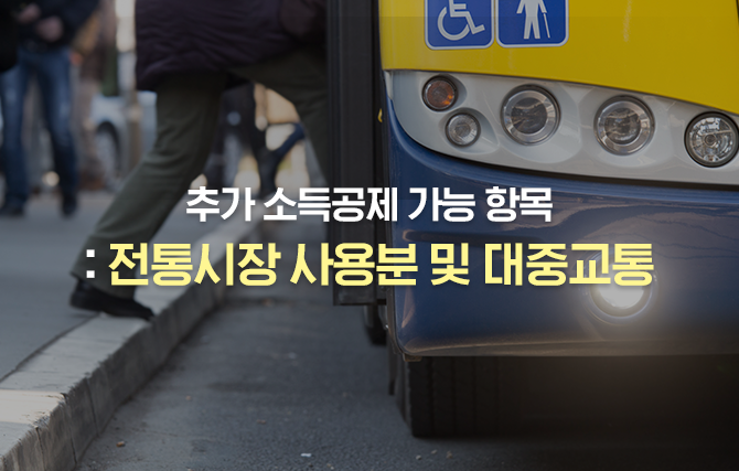 공제한도 초과금액이 있는 경우, 1) 전통시장사용분의 공제율을 곱한 금액(한도 100만 원)과 2) 대중교통이용분의 공제율을 곱한 금액(한도 100만 원)에 대해 별도로 각각 공제 받을 수 있으며, 총 급여가 7천만 원이하인 경우, 도서, 공연, 박물관, 미술관 사용금액에 공제율을 곱한 금액(한도 100만 원)을 별도로 공제받을 수 있습니다.