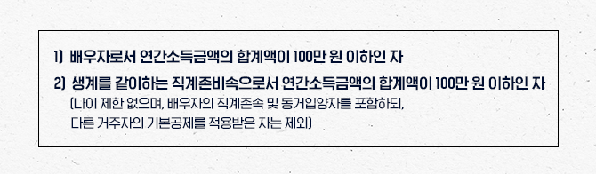 신용카드 소득공제는 근로소득자가 총 급여의 25%이상 사용한 금액에 대해 적용되는데요. 예를 들어, 총 급여가 5,000만 원이라고 한다면, 1,250만 원이상 사용한 금액부터 소득공제 됩니다.(5천만 원 x 25%) 이때, 주의할 점은 카드소득공제는 카드 명의자로 귀속된다는 것입니다. 예를 들어, 맞벌이부부가 가족카드를 쓸 경우, 카드사용액은 가족카드 명의자만 소득공제를 받을 수 있다는 것을 주의해야합니다. 아래의 경우, 신용카드 공제대상자가 사용한 금액은 근로자 본인의 신용카드 소득공제 금액에 포함시킬 수 있습니다.