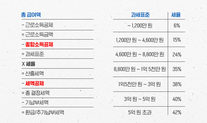우리나라 소득세 과세체계는 소득이 높을수록 세율이 높아지는 누진세율을 적용하기 때문에 소득이 높은 사람은 세율을 곱하기 전에 소득공제를 활용하여 과세표준을 낮추는 것이 유리합니다. 반면, 상대적으로 소득이 낮은 분들은 세율에 관계없이 동일하게 공제해주는 세액공제가 유리합니다.