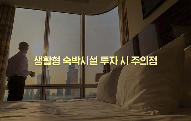 이러한 문제들을 해결하기 위해서는 ‘생활형 숙박시설’의 선택 목적을 명확하게 설정하는 것이 가장 중요합니다. 즉, 분양자가 직접 생활형 숙박시설에 거주할 것인지, 일반임대사업자 등록 이후 임대할 것인지, 마지막으로 숙박업소로 운영할 것인지에 대한 의사결정을 내리고, ‘관심을 두는 생활형 숙박시설의 입지와 특성이 나의 구입 목적에 부합하는가?’를 중점적으로 살펴보아야 할 것입니다.