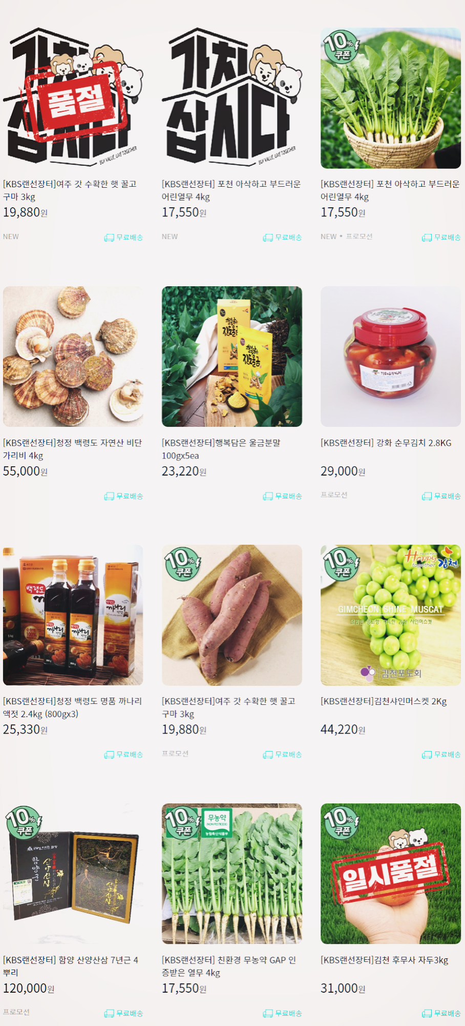 랜선장터에 소개되는 상품들을 구매하는 방법은 가치 삽시다몰과 GS프레시몰에서 구매하실 수 있는데 아래에 두 쇼핑몰의 링크 주소가 있으니 그대로 접속하셔서 랜선장터를 검색하시면 됩니다.