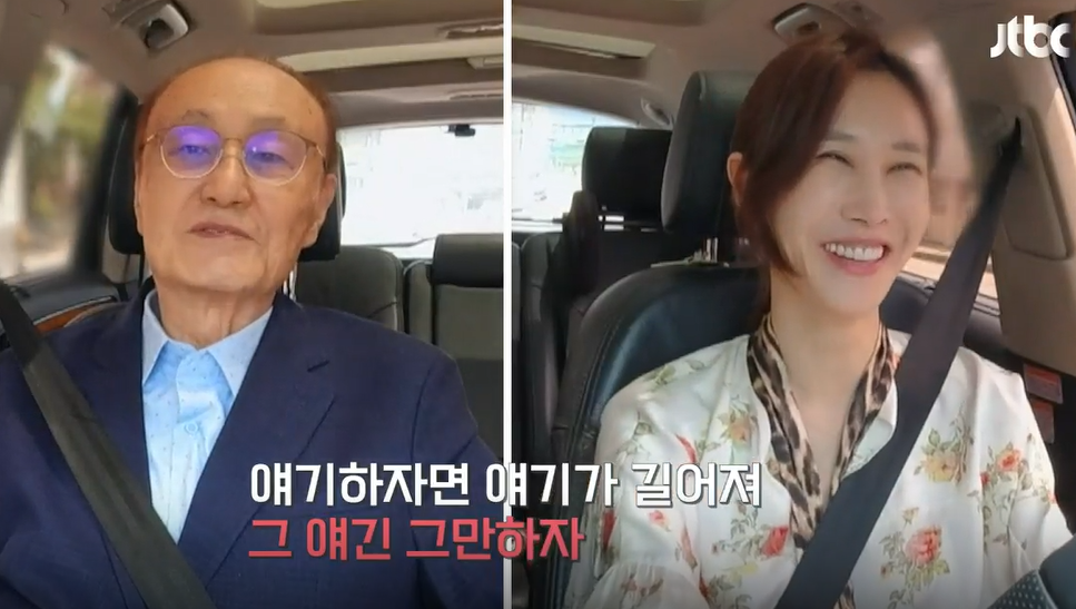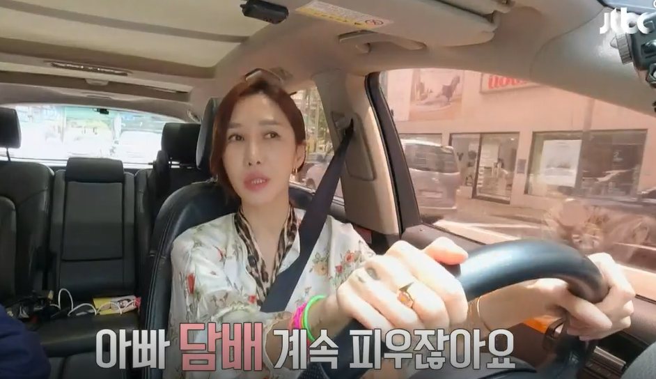 윤일봉이 딸 윤혜진의 과거 초보 운전 시절 미국 유학당시 교통사고 일화를 얘기하니 윤혜진은 아버지 윤일봉이 담배를 계속 피운다며 핀잔을 줍니다.