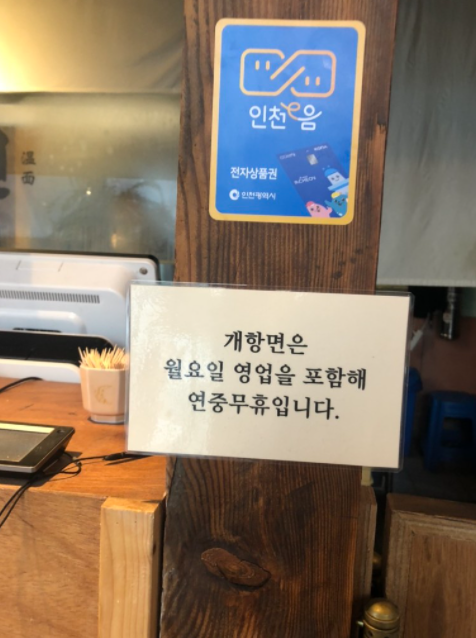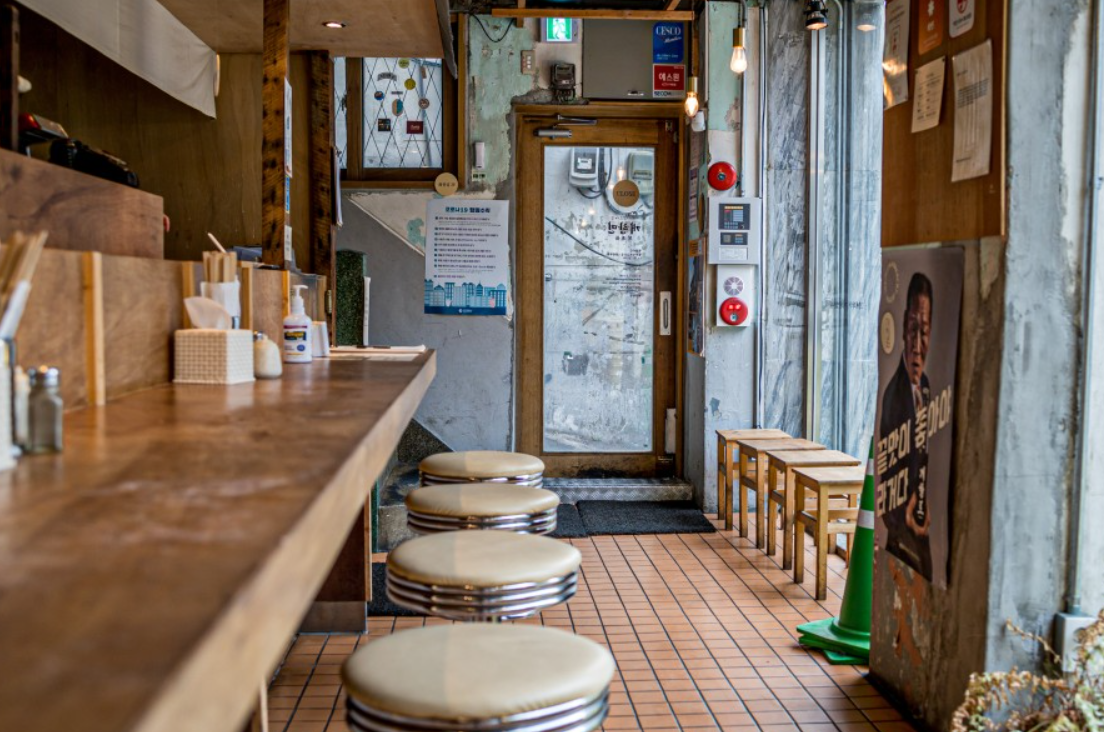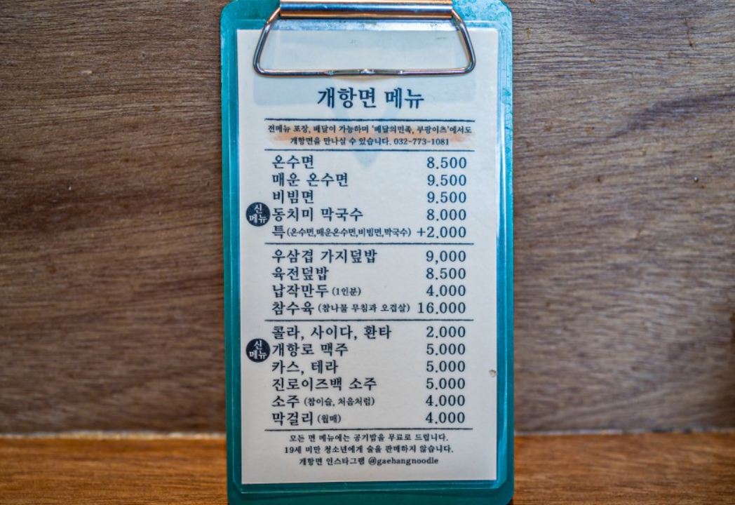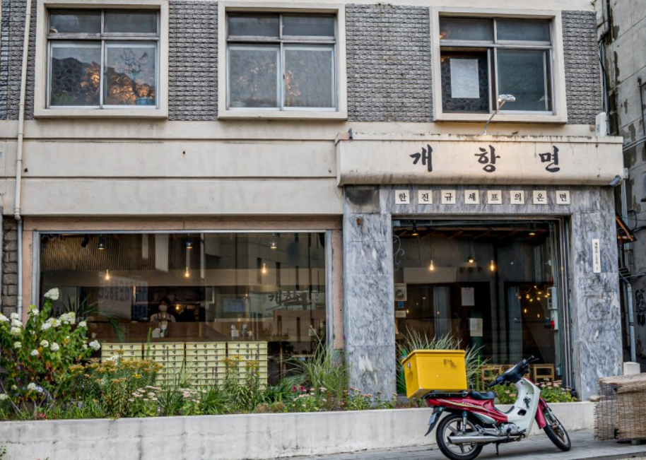 1883년 개항한 인천항을 모티브로 레트로한 분위기의 국수집 개항면은 따끈한 국물의 온면가게입니다.