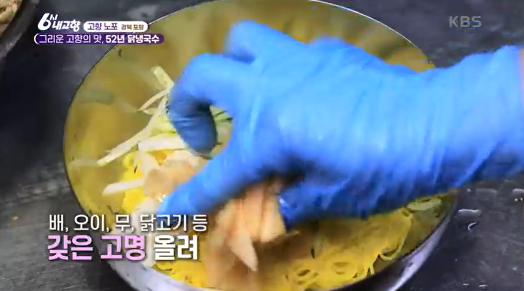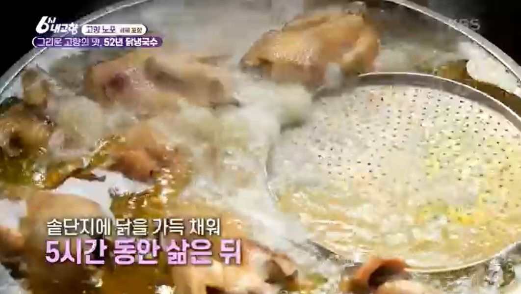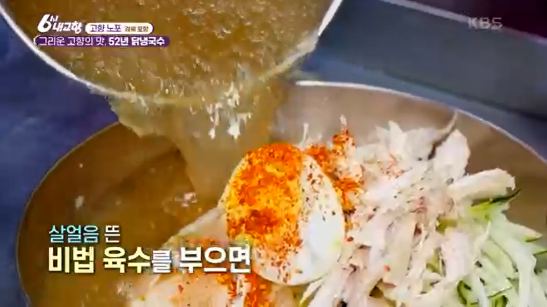 6시 내고향 고향 노포 코너에서는 황해도 출신의 아버지를 이어 2대째 가업을 이어가고 있는 경북 포항 닭냉국수 가게가 소개되었습니다.