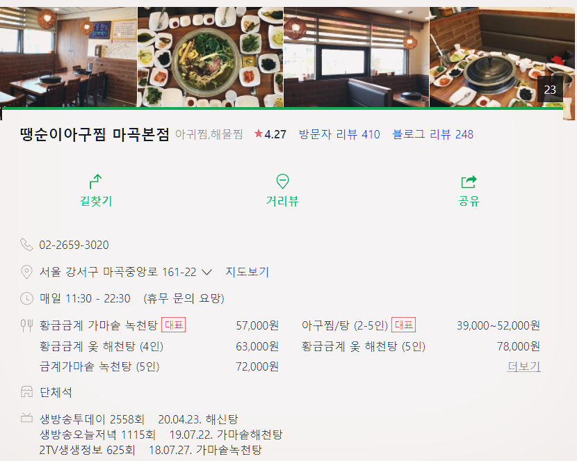 생생정보 가마솥 장어 해신탕 철판 아귀찜 파는 곳 가게 위치 정보 리뷰 등은 아래를 통해서 확인하실 수 있습니다.
