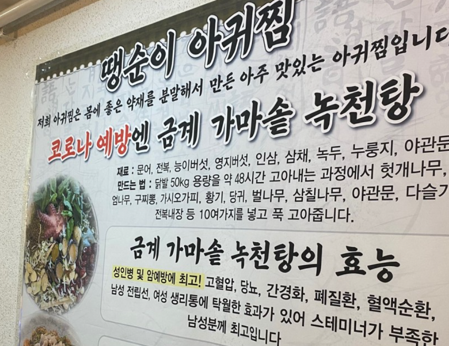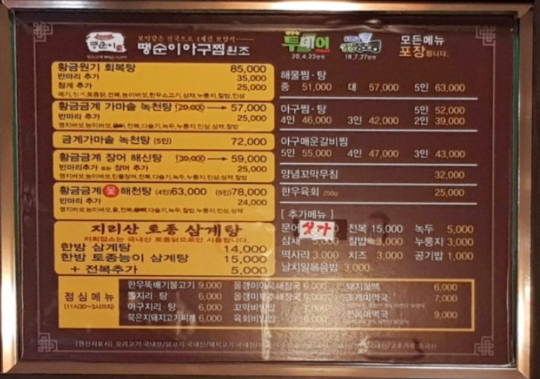 - 상호 : 땡순이 가마솥 보양식 아구찜